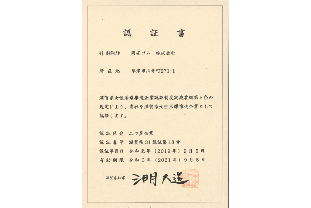 『滋賀県女性活躍推進企業 二つ星企業』を獲得致しました。