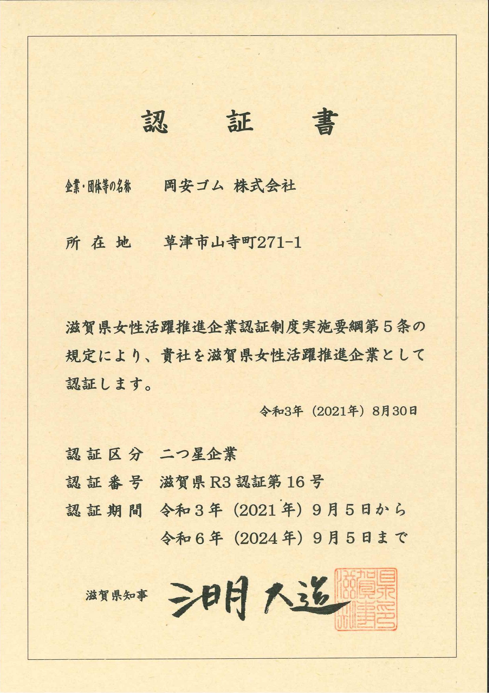 『滋賀県女性活躍推進企業 二つ星企業』を獲得致しました。