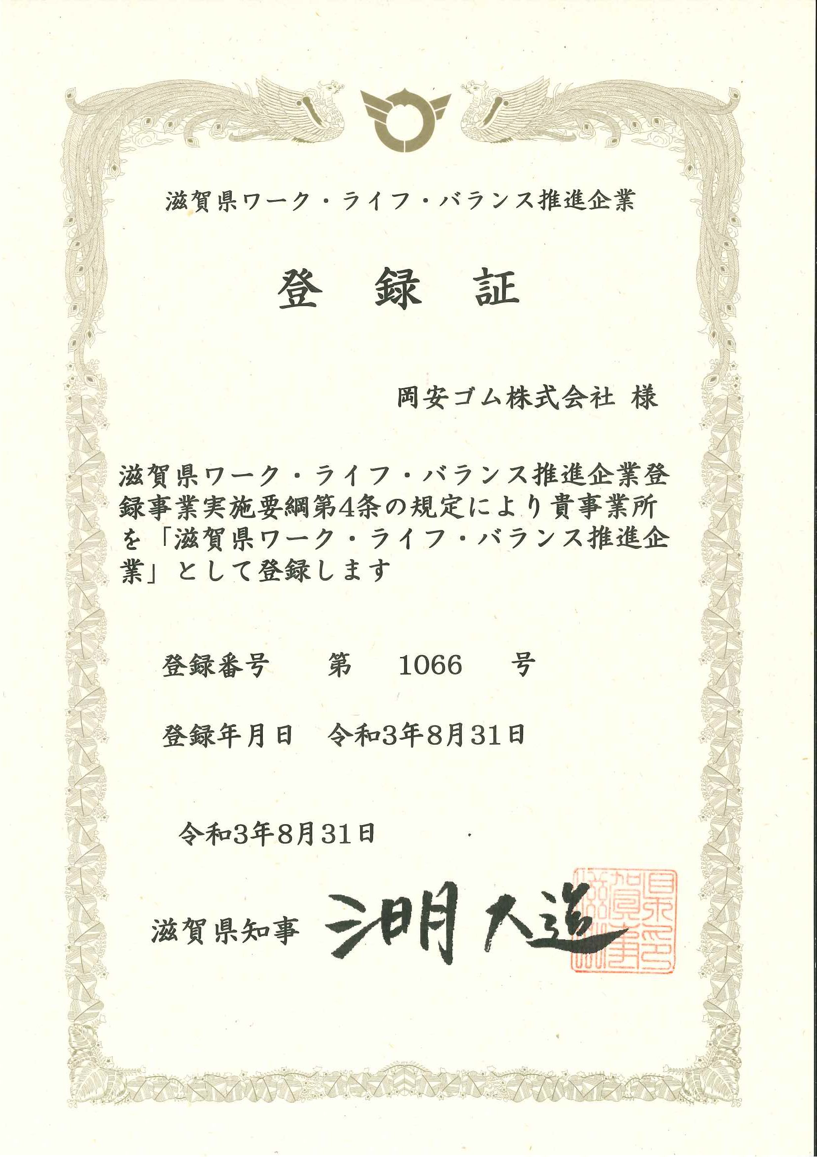 『滋賀県ワーク・ライフ・バランス推進企業』として登録されました。