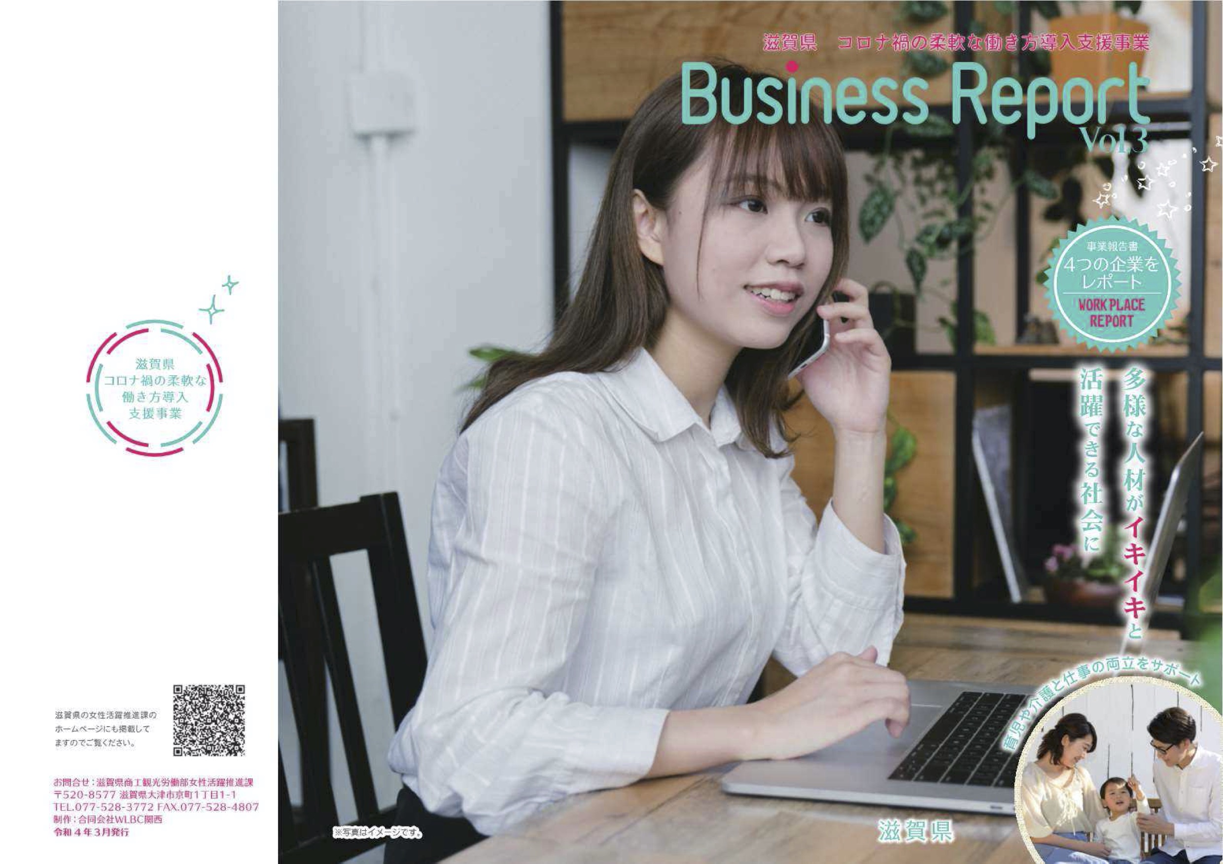 2022.6.14 採用 滋賀県女性活躍推進課の事例集「Business Report」に掲載いただきました 滋賀県女性活躍推進企業認証制度の認証取得企業として、成果の事例集「Business Report」に掲載いただきました。 是非、下記リンクより御覧ください。 >>>滋賀県女性活躍推進課の事例集「Business Report」掲載記事はコチラ