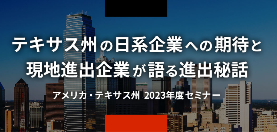 東京都は、アメリカ・テキサス州と締結した中小企業支援に関する覚書をもとに、アメリカ・テキサス州への展開を目指す都内中小企業への支援を実施しております。こちらのセミナーでは、海外展開や米国への進出を検討している都内中小企業を対象に、市場の魅力や現地進出済日系企業や現地に進出しようとしている企業の体験談、現地支援機関の支援内容や日系企業への期待など、現地の情報を提供する内容となっております。実施要項が記載しているURLを下記に記載致します。