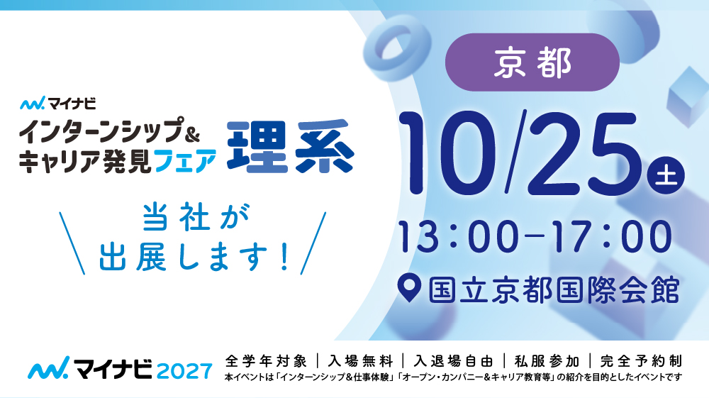 マイナビ 主催「10月25日 インターンシップ&キャリア発見フェア【理系】 京都会場」へ出展します!