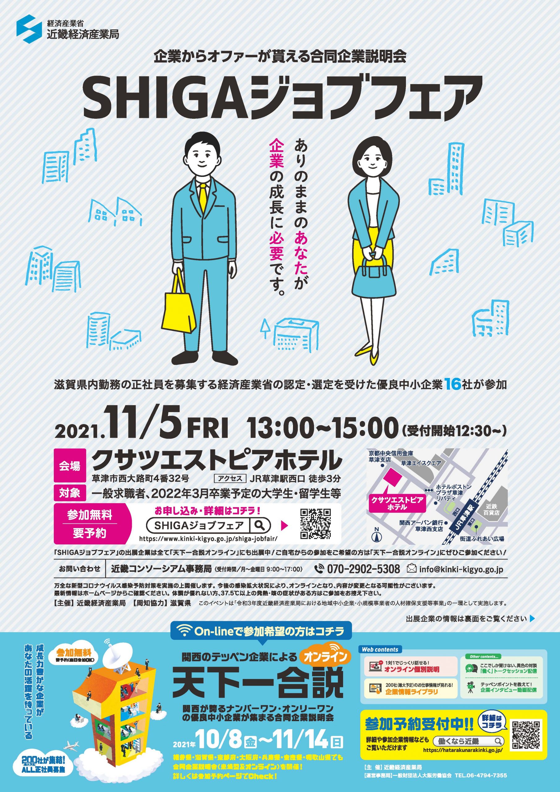 2021.11.5(金)『SHIGAジョブフェア(対面)』2021.10.8(金)〜11.14(日)『天下一合説(オンライン)』に参加します